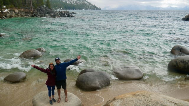 California is many things, and ugly is not one of them. Over the past 6 years we’ve found ourselves driving Westward for at least one trip a year. Barely scratching the surface, I’d say we’ve seen a ton for someone who doesn’t live there. Been up and down the coast visiting the beautiful beaches, walked through the giant Redwoods, rock climbed the boulders in Joshua Tree National Park, and wandered the mountain towns in Northern California. Though we haven’t checked off Yosemite, I think one destination has got to be near the top spot in California. And that is Lake Tahoe! More specifically, the ever popular South Lake Tahoe.